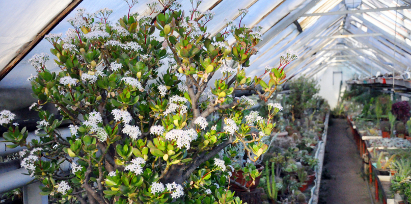 Crassula portulacea to roślina, która często uprawiana jest w domach. Popularny jest pogląd, że dotknięcie rośliny (najlepiej jej pnia) przynosi szczęście, stąd wzięła się potoczna nazwa „drzewko szczęścia”. Rzadko jednak można zobaczyć roślinę tak okazałą, jak w rumskiej Kaktusiarni. A jeszcze rzadziej trafia się okazja do zobaczenia tego drzewka kwitnącego.