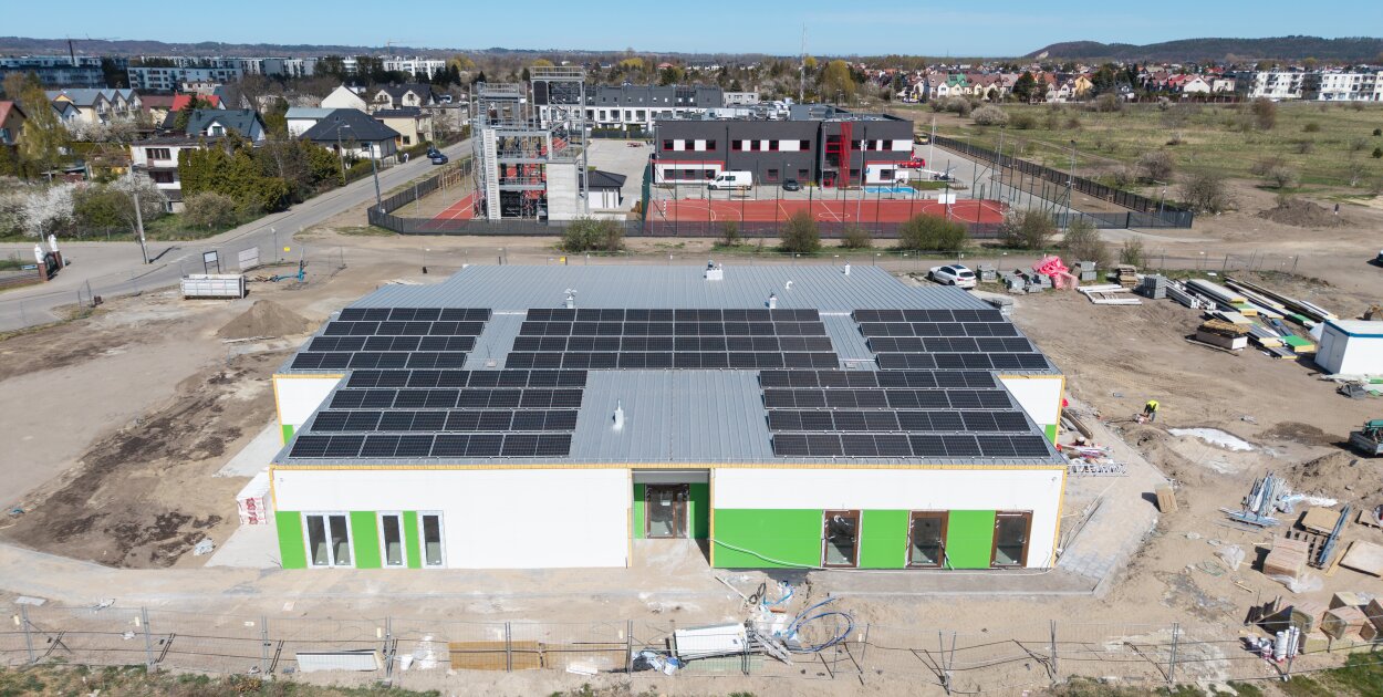 Z każdym tygodniem widać coraz większy postęp prac przy ul. Reja w Rumi. Tam powstaje żłobek, a najważniejszą informacją jest fakt, że Bryła budynku jest już gotowa, trwają intensywne prace wykończeniowe, a na dachu zamontowano panele fotowoltaiczne. To rozwiązanie ekologiczne i energooszczędne, które w przyszłości pozwoli ograniczyć koszty utrzymania obiektu.