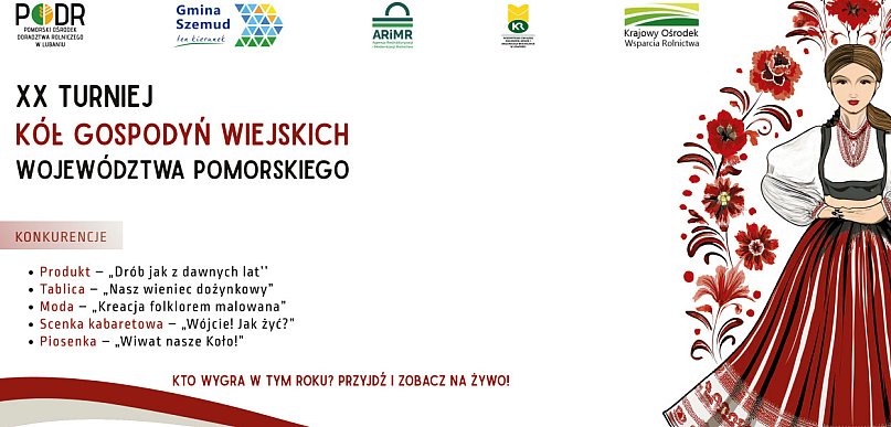 Pomorski Ośrodek Doradztwa Rolniczego w Lubaniu, we współpracy z Gminą Szemud, Pomorskim Oddziałem Regionalnym Agencji Restrukturyzacji i Modernizacji Rolnictwa w Gdyni, Wojewódzkim Związkiem Rolników, Kółek i Organizacji Rolniczych w Gdańsku oraz Krajowym Ośrodkiem Wsparcia Rolnictwa Oddziałem Terenowym w Pruszczu Gdańskim organizuje XX Jubileuszowy Turniej Kół Gospodyń Wiejskich Województwa Pomorskiego w dniu 25 października 2025 r. godz. 10:00w Gminnej Hali Sportowej w Bojanie, ul. Józefa Wybickiego 38.