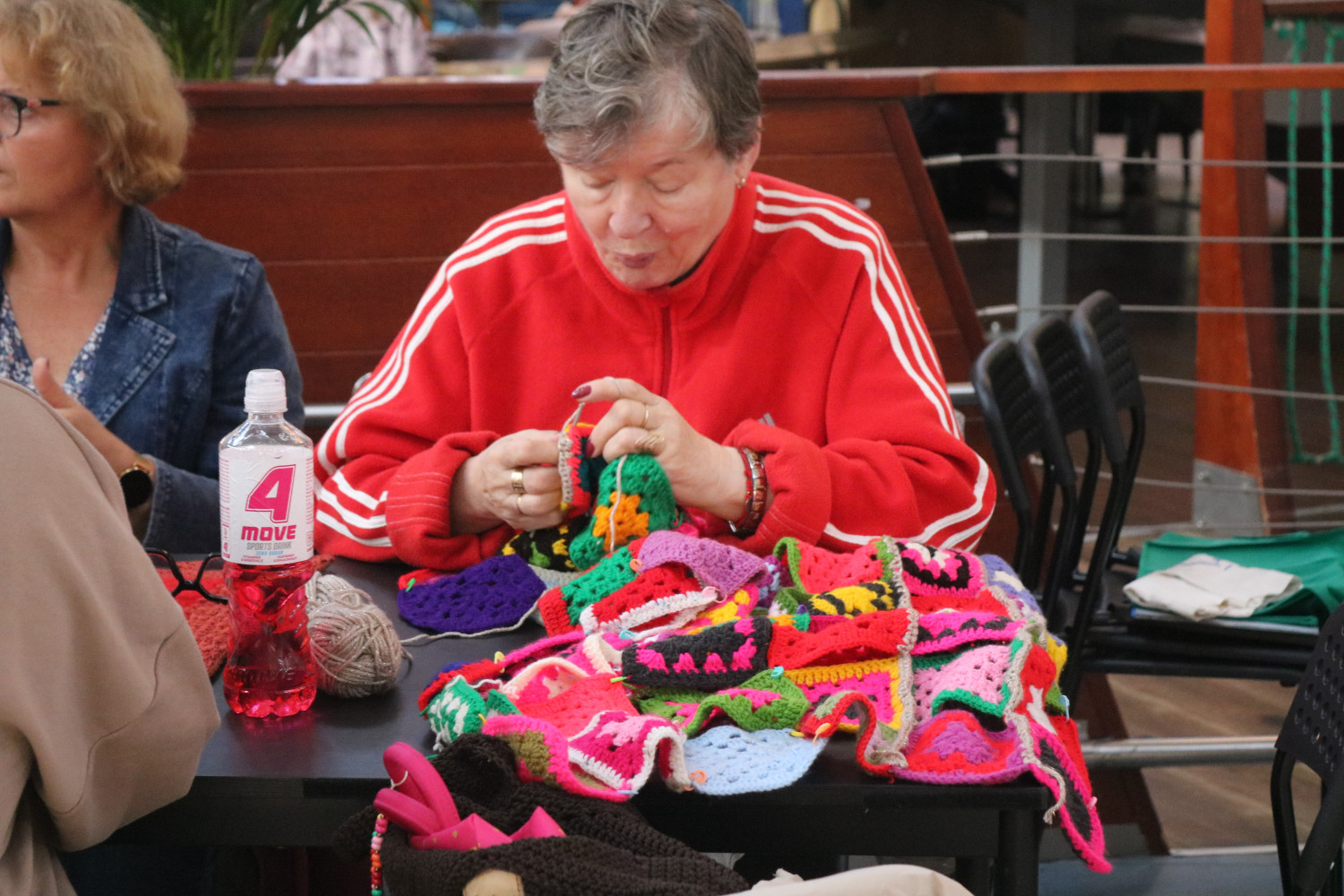 Tym razem seniorzy, którzy zdecydowali się na udział w tym kreatywnym spotkaniu, mieli okazję poznać technikę dekorowania za pomocą wełny czesankowej. Krok po kroku uczyli się pod czujnym okiem prowadzącej warsztaty tworzenia efektownych ozdób. Do tego można było przynieść własne przedmioty do udekorowania (np. szalik, poszewkę czy torbę). Niektórzy korzystali też z materiałów przygotowanych przez organizatorów.