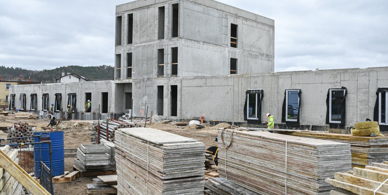 Na placu budowy zakończono już roboty żelbetowe. Obecnie prowadzone są prace związane z instalacjami zewnętrznymi i przyłączami, a także izolacją fundamentów.