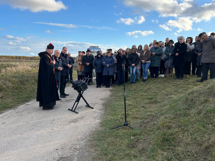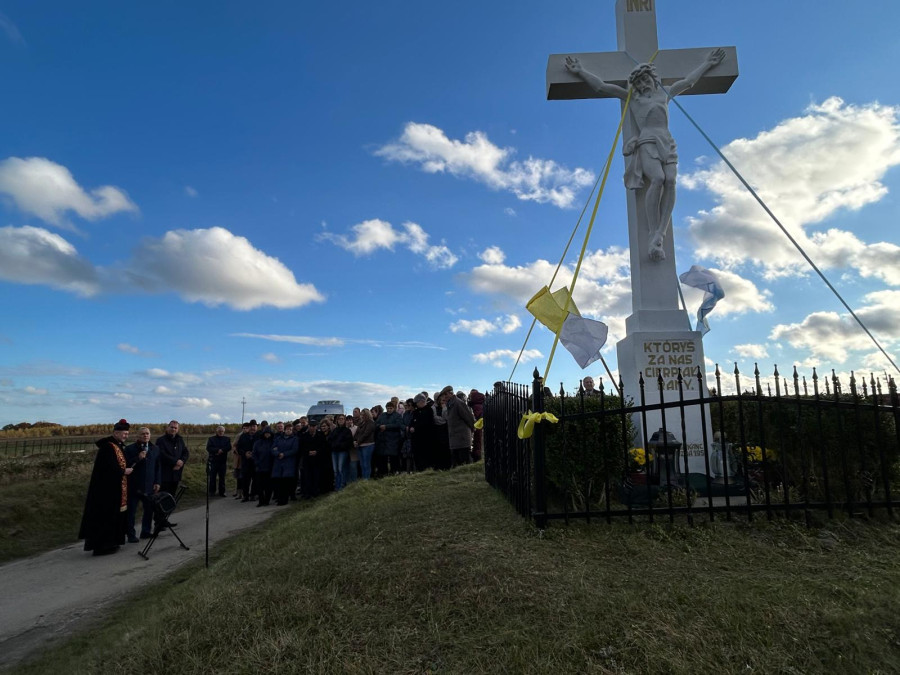 W uroczystości tłumnie uczestniczyli mieszkańcy wsi. Wójt razem z Sołtysem Warzna Wiesławem Hopa dziękowali za odnowienie i uporządkowanie terenu wokół krzyży. Następnie wszyscy zgromadzeni przenieśli się w okolice ronda w Warznie, gdzie modlono się przy kapliczce Matki Bożej Królowej Pokoju. Tam również pod strzechą znajduje się zabytkowa bryczka. Teraz przy rondzie pojawił się kolejny ważny element lokalnej, współczesnej historii. Sołtys wraz z mieszkańcami przygotowali pamiątkowy kamień z tablicą przypominającą o tym, że w Szemudzie w 2025 roku odbył się XXVI Światowy Zjazd Kaszubów.