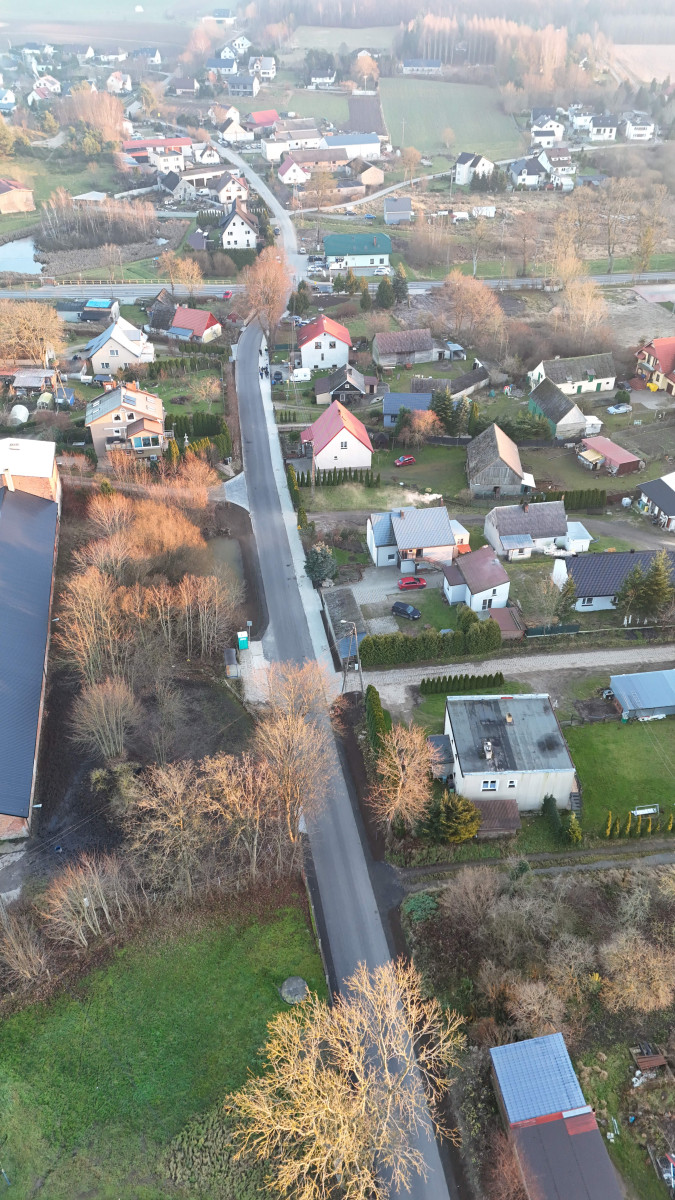 Zakres zadania obejmował wykonanie nowej nawierzchni asfaltowej na odcinku o długości 355 metrów, budowę nowego wodociągu wraz z przyłączami, remont kanalizacji deszczowej oraz wykonanie chodników i zjazdów do posesji. Inwestycja znacząco poprawiła standard infrastruktury technicznej oraz bezpieczeństwo i komfort użytkowników drogi.