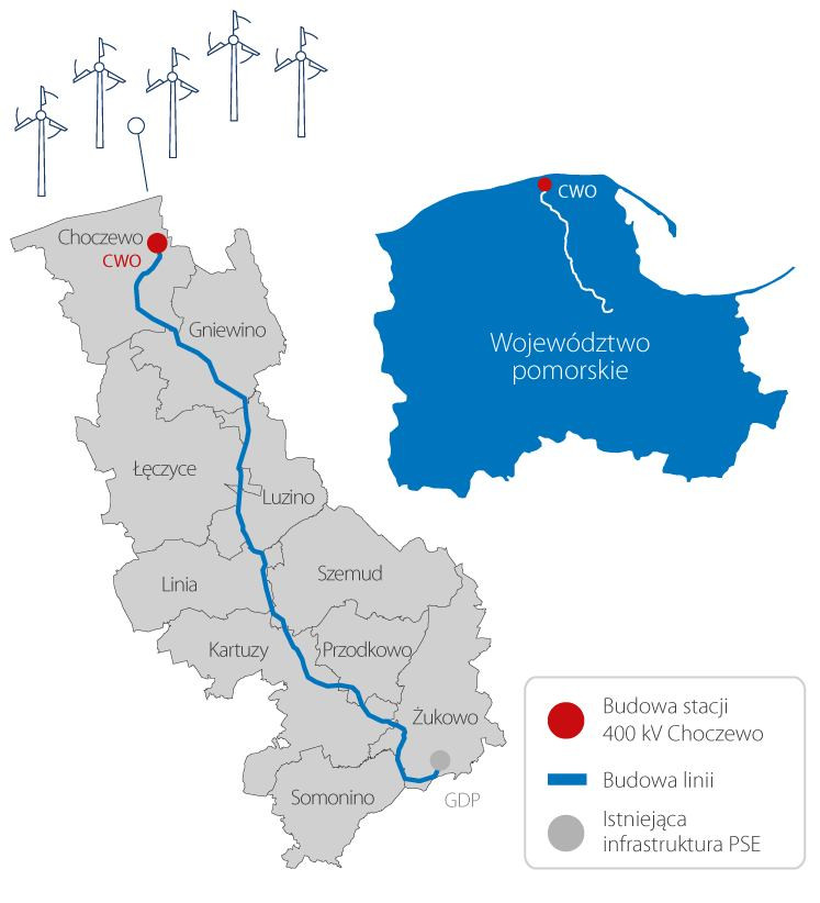 Linia 400 kV Choczewo–Gdańsk Przyjaźń o długości blisko 90 km połączy stację elektroenergetyczną Choczewo w Osiekach Lęborskich (gmina Choczewo) ze stacją Gdańsk Przyjaźń w gminie Żukowo.