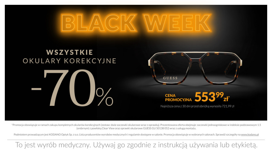 Jeśli od dawna myślisz o nowych okularach, teraz jest najlepszy czas, by je zrobić. W salonie KODANO Optyk w Redzie trwa wyjątkowa promocja Black Week, podczas której kompletne okulary korekcyjne (oprawa + dwie soczewki okularowe) możesz kupić z rabatem do -70%.