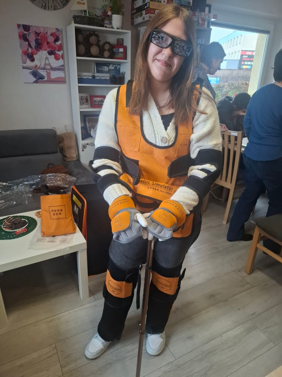 To dzięki temu narzędziu uczniowie mogą realnie poczuć, jak wygląda zwykły dzień seniora: wejście po schodach, zawiązanie butów, przeczytanie drobnego tekstu czy rozmowa w hałasie.