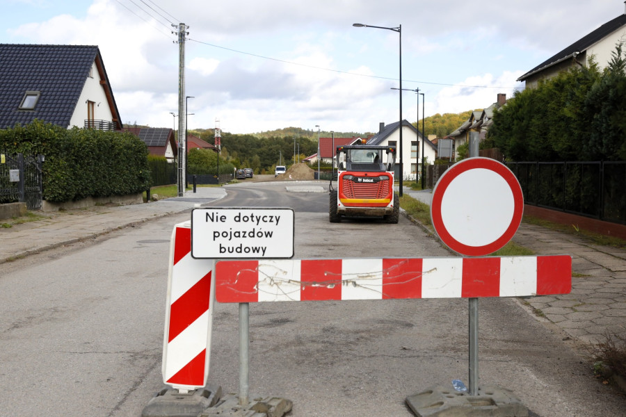 Na placu budowy ulicy Starowiejskiej w Wejherowie zauważalne jest już nowopowstałe rondo oraz nawierzchni jezdni. Zmodernizowana droga ma zostać oddana do użytku w 2026 roku.