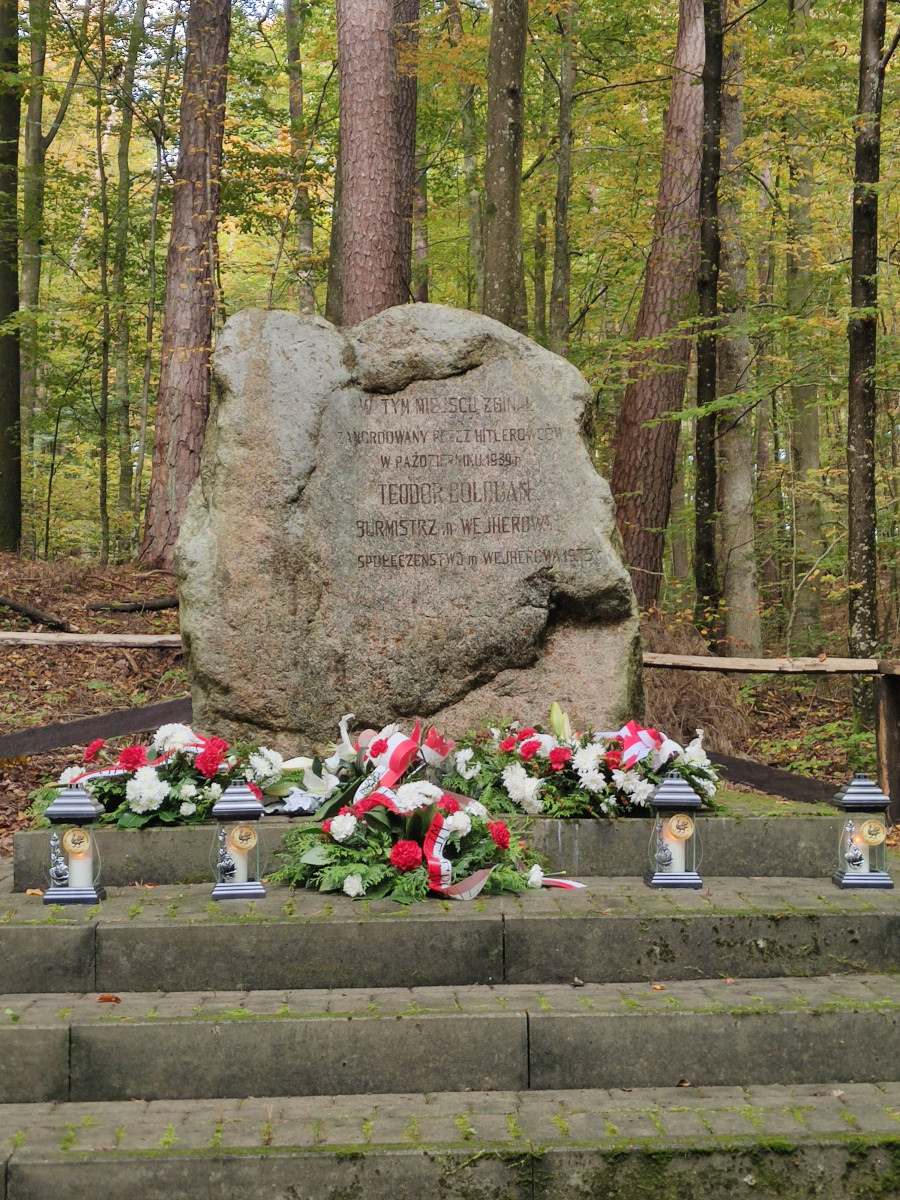 Jednym z elementów wczorajszych obchodów Dnia Edukacji Narodowej było złożenie kwiatów przed pomnikiem Teodora Bolduana, burmistrza miasta, którego hitlerowcy zamordowali 15 października 1939 w lesie, w okolicach Wejherowa.