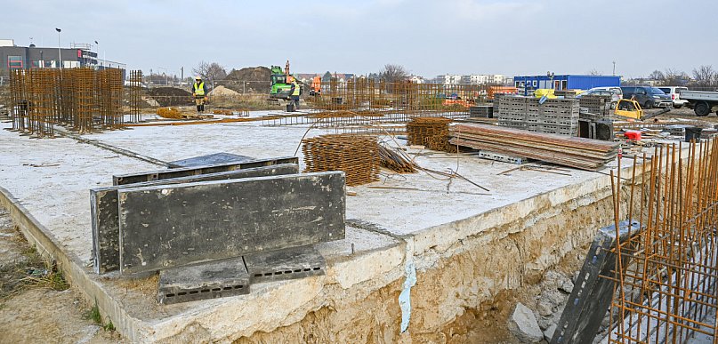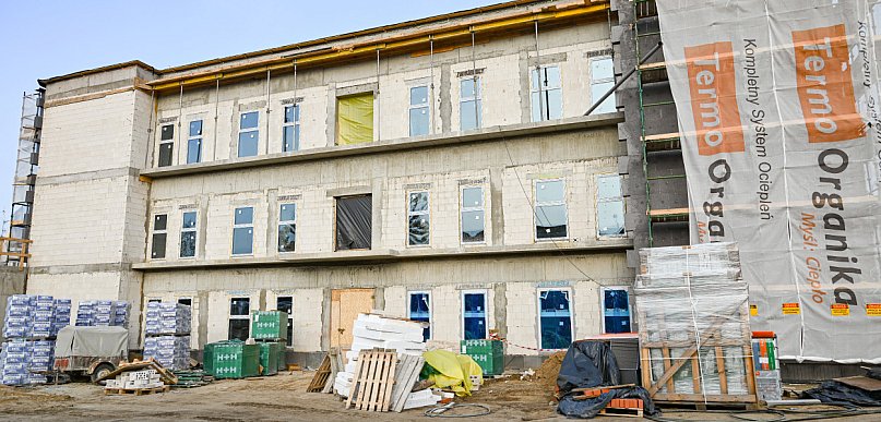 Zakończono montaż okien, a na zewnątrz trwają prace elewacyjne. Wewnątrz budynku prowadzone są prace tynkarskie, wykonywane wylewki posadzkowe oraz instalacje. Na drugim piętrze murowane są ścianki działowe, a równolegle rozpoczęto wykonanie przyłączy i instalacji sanitarnych na zewnątrz obiektu.
