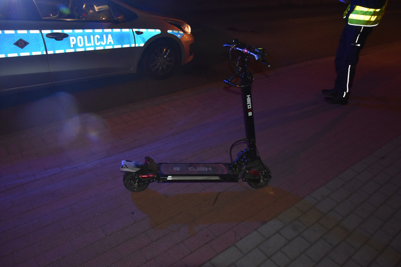 Na miejsce zdarzenia natychmiast wysłano patrol ruchu drogowego oraz służby ratunkowe. Mężczyzna doznał urazu głowy i został przetransportowany do szpitala. Policjanci wyczuli od niego silny zapach alkoholu, jednak ze względu na jego stan zdrowia nie mogli przeprowadzić badania trzeźwości na miejscu. Dlatego też pobrano mu krew w szpitalu do dalszej analizy. Funkcjonariusze na miejscu wypadku przeprowadzili oględziny oraz wszystkie niezbędne czynności, aby wyjaśnić okoliczności zdarzenia. Hulajnoga elektryczna została zabezpieczona do sprawy. Podczas jej oględzin okazało się, że pojazdem tym można poruszać się z prędkością nawet 55 km/h,co zgodnie z obowiązującymi przepisami jest zabronione. Takim pojazdem możemy jechać do 20 km/h, a jadąc po chodniku trzeba jechać jeszcze wolniej, bo z prędkością pieszego. Policjanci ustalili także, że mężczyzna w chwili zdarzenia, nie miał na sobie kasku ochronnego. Upadek z hulajnogi zakończył się urazem głowy, dlatego też został przewieziony do szpitala.